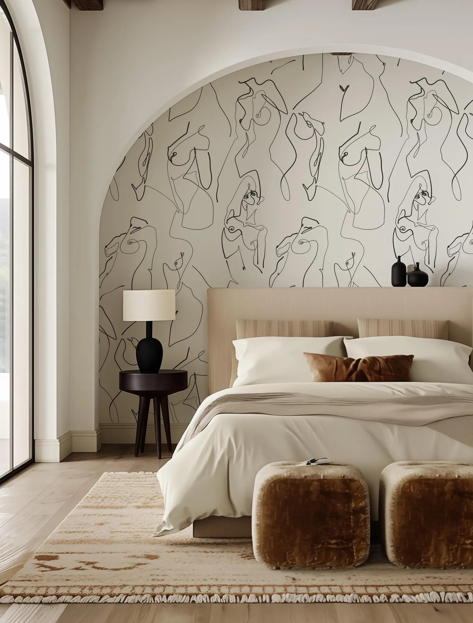Choose from a selection of colors, designs, and materials, including fabric peel-and-stick, vinyl, or traditional options. Each wallpaper is tailored exclusively for you, ensuring a perfect match for your space.