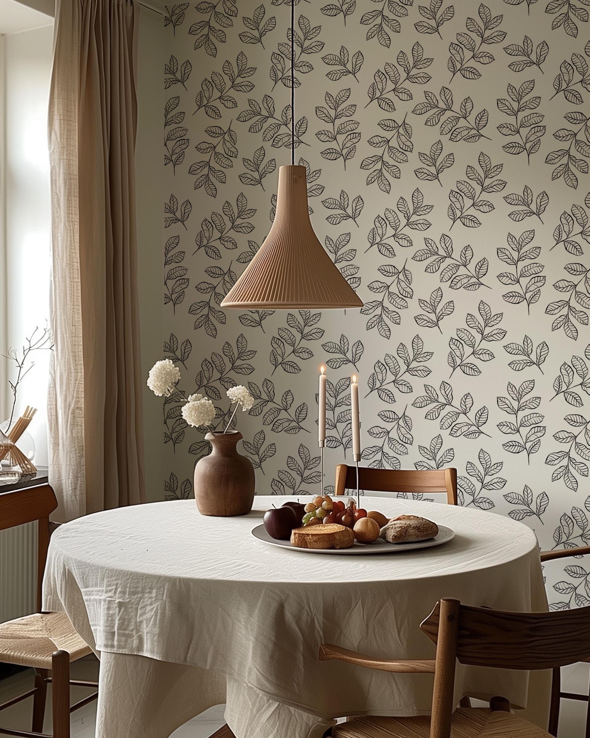 Black & White Leaf Wallpaper